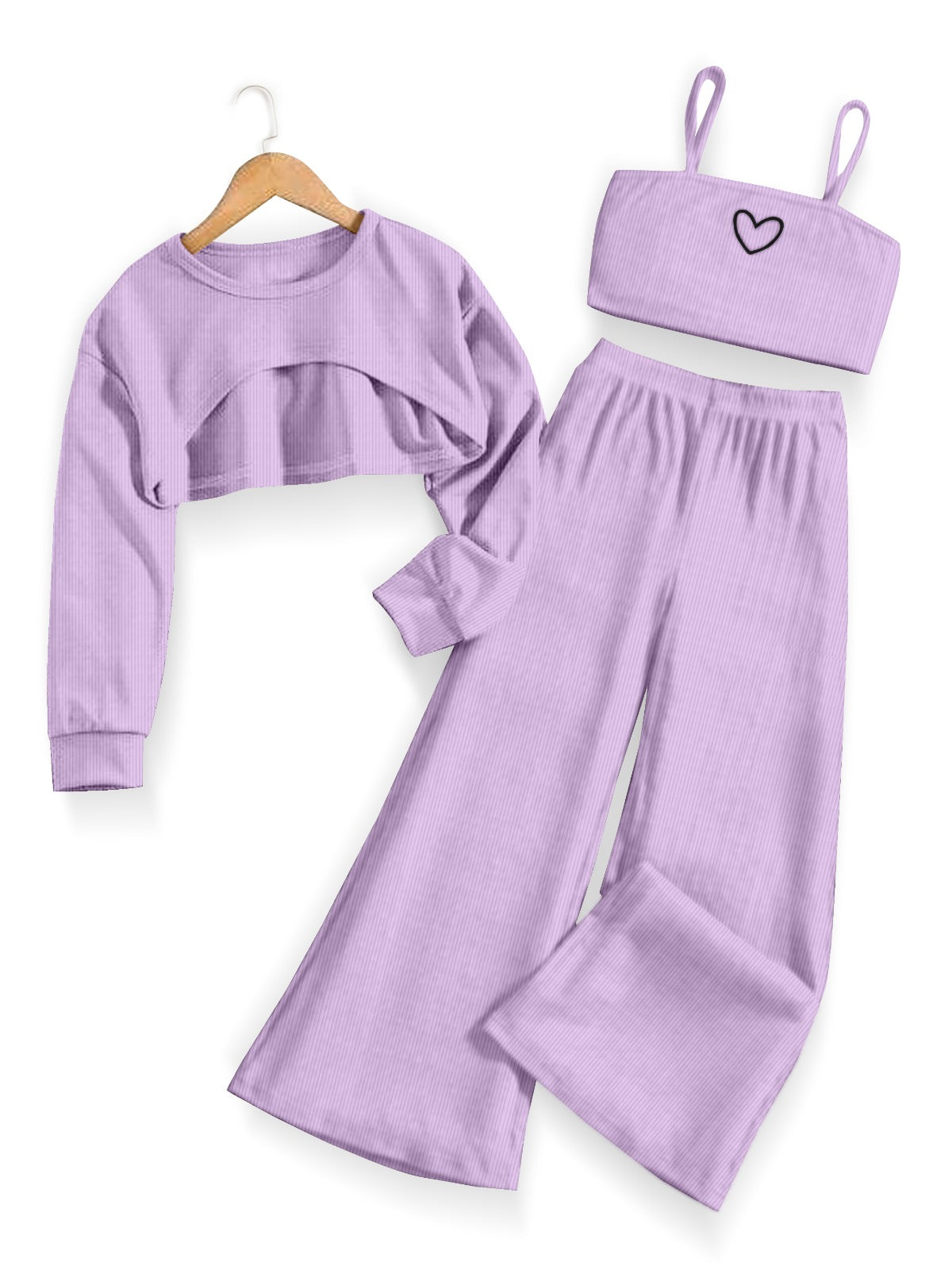 Fabric Cotton Blend Sales Package 1 Style Code 3 PIECE SET Top fabric Polyester Bottom fabric Polyester Top type Crop Top Bottom type Palazzo Pattern Solid